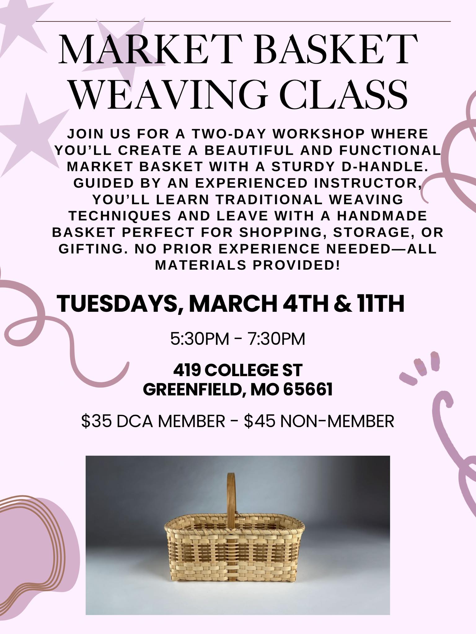 DCA Center 419 College St, Greenfield, MO, United StatesJoin local artist Jocelyn Dunaway for a fun and engaging drawing class focused on faces and figure drawing! Whether you’re a beginner or looking to improve your skills, this class will guide you step by step as you explore proportions, expressions, and the human form. All materials are provided—just bring your creativity! Details: Pricing Options: